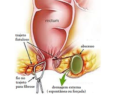 A fístula anal é geralmente conseqüência da drenagem do abscesso que pode ter sido espontânea ou cirúrgica. Há então, a permanência de um trajeto que internamente se abre no reto e externamente na pele da região perianal no local onde houve a drenagem do abscesso.